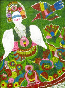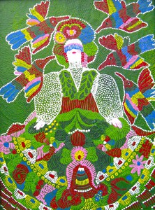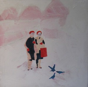 2013Maria en haar zoon in een witte lijn op een blauwe achtergrond.