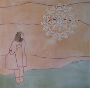 2017Een meisje naast het riet in de polder veel blauwe lucht en takken in reliëf.